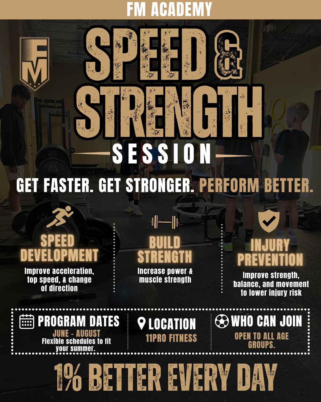 This high-energy training focuses on improving explosiveness, acceleration, agility, and overall strength to help you move faster, react quicker, and perform at your best.