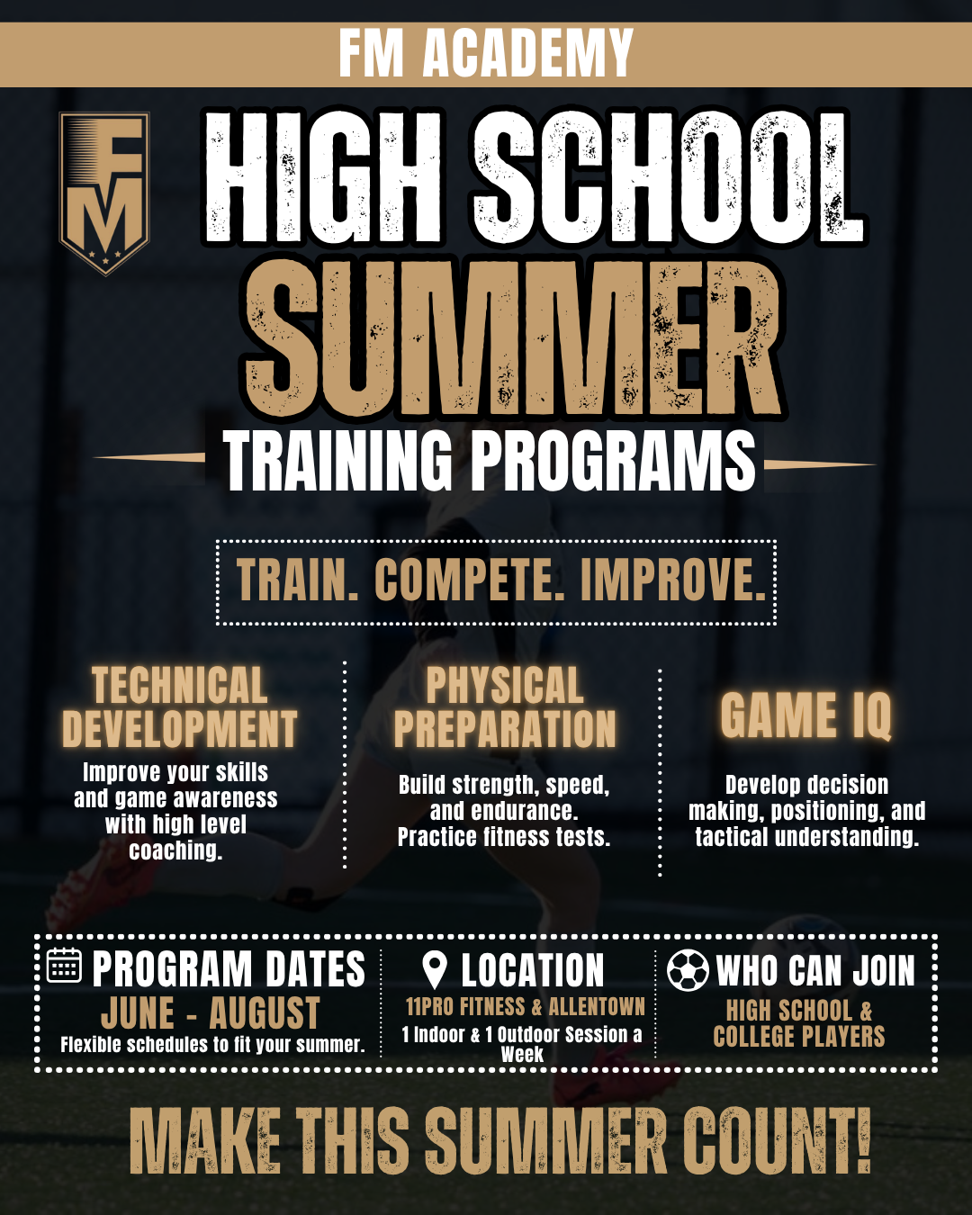 UPCOMING TRAINING PROGRAMS ARE BELOW: ANY QUESTIONS REACH OUT TO SOCCER@FMFOOTY.COM